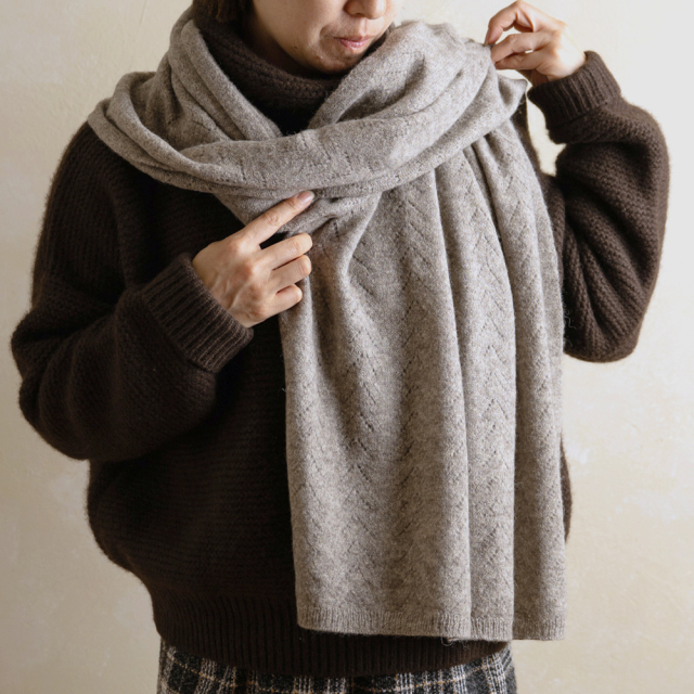 | 商品説明文 | 編み模様のデザインが入ったヤクのニットストール。 暖かさや蒸れにくさ、丈夫さが特徴のヤクの毛が100%使用されているので、機能性にも優れています。流行や年齢を問わず、洋服にも合わせやすいデザインです。軽く柔らかな素材なので、さりげなく巻けて、かさばらず持ち運びにも便利です。 ※製造時期によって色に多少の違いがある場合がございます。 【ヤクについて】 特徴:ヤクは、標高4000〜6000メートルの草原や岩場に生息する、寒さに強い希少なウシの仲間です。寒冷地に生息しているため厳しい寒さから身を守れるよう保温性や防水性に優れた分厚い毛を持っています。 そのためヤクの毛は、暖かく蒸れにくいという優れた素材です。 さらに摩擦にも強い性質があり、丈夫で毛玉も出来にくいため、カシミヤよりも長持ちするとされています。 採取した中から上質な毛のみを使用していますので、とても柔らかい肌ざわりです。 着色は一切せず、天然のままの優しい色合いです。 【お手入れ方法】 ・素材の性質上、水洗いすると風合いが変わるおそれがありますので、ドライクリーニングをお勧めします。 ・タンブラー乾燥はお避け下さい。 ・毛玉が出来た場合は、毛玉取り器やはさみなどで丁寧に取り除いて下さい。 ・非常に繊細な製品のため、着用・着脱の際には時計・アクセサリー等の突起物に引っかからないようにご注意ください。 |