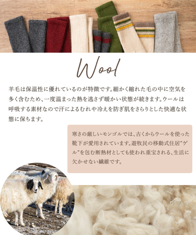 モンゴル生まれの天然ウール靴下 クッション性にもすぐれ登山やアウトドアにもおすすめ!