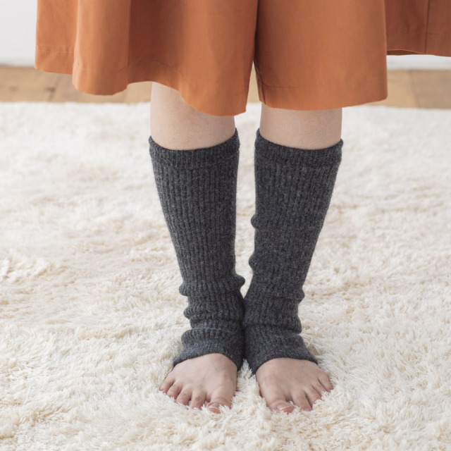 暖かく むれにくい 自然素材でお肌にやさしい モンゴル産ウール使用 リブレッグウォーマー ロング丈