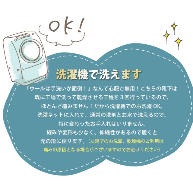 暖かく履き心地も良いので購入してますが、たくさん購入している中で、ウール90%の靴下はかなり縮みました。