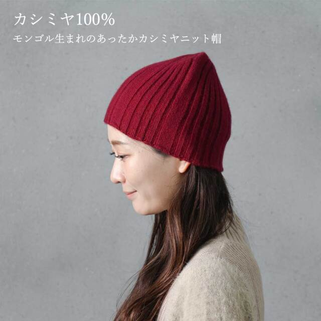 カシミヤ100% リブニット帽 ニットワッチ モンゴル国産
