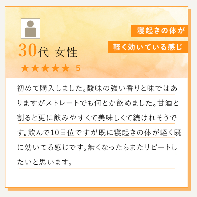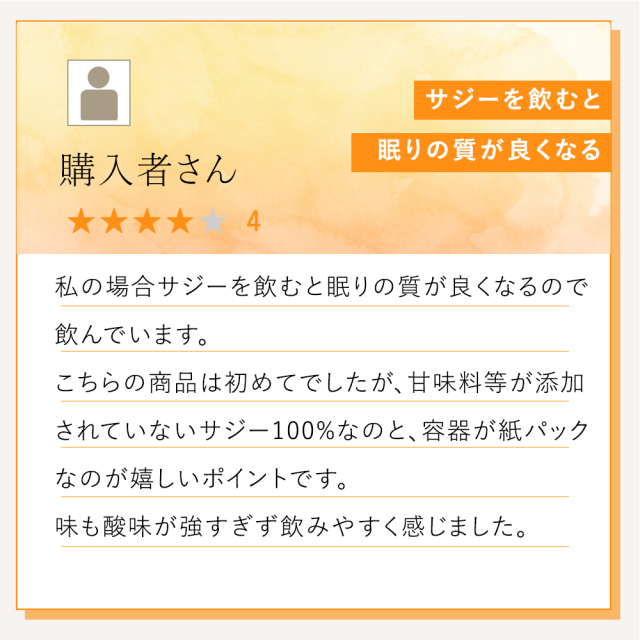 こちらの製品は果実をそのまま絞った感じで、冷凍果実と遜色ありません。 毎朝スムージーに入れて愛飲しています。シーベリーを知らずに過ごした40代よりも、飲み始めた50代の現在の方が肌が潤って張りの有る感じです。 今後も飲み続けたいと思っています。 お店からのコメント |