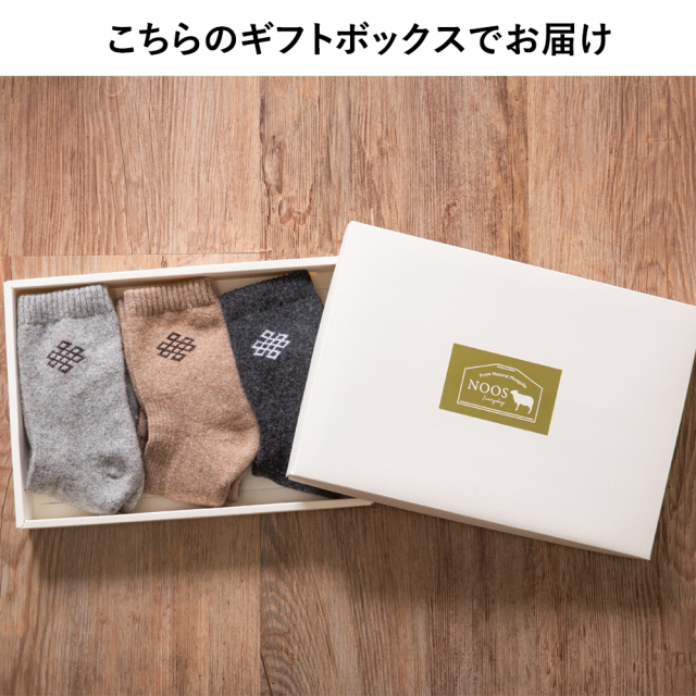 | 商品説明文 | 敬老の日のギフトに最適な3足セットです。 モンゴルのウールを使用した自然素材の靴下です。 とても暖かく、蒸れにくいので冷え対策にもおすすめです。 ※自然素材を使用しているため、色やサイズに多少の違いがある場合がございます。 ※洗濯時は手洗いまたはネットをご使用いただき、30℃以下の水で洗濯してください。 ※写真の光具合によって多少色に違いがある場合がございます。 ※製造時期によって色に多少の違いがある場合がございます。 【ウールについて】 ウールは保温性に優れているのが特徴です。 細かく縮れた毛の中に空気を多く含むため、 一度暖まった熱を逃さず、あたたかい状態が続きます。 また、伸縮性にも優れ、締め付け感もなく、暖かいウールがここちよい フィット感で足を包み込みます。 寒さの厳しいモンゴルでは、古くからこのウールの靴下が愛用されています。 ※化学繊維と比べると強度が弱い場合があります ※洗濯後は縮んだように見えることもありますが、履いていただくともとにもどります ※自然の素材のため、摩擦を加えると毛玉ができることがあります ※自然の素材のため、お子さまや皮膚の弱い方が履かれますとかゆく感じることがございますが、洗濯をすると和らぐ場合があります |